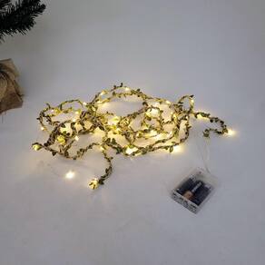 Descrição do Produto: Fio de Fada Led com Folhagem 5M 50 Leds Bco Quente Pilha