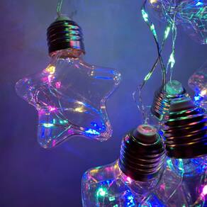 - Um Corda de 3 metros de largura, com 10 Lâmpadas em forma de Estrela, ideal para decoração e iluminar sua festa.