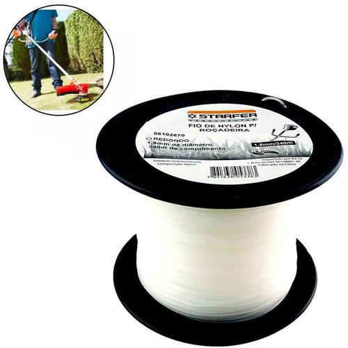 O Fio de Nylon para Roçadeira Perfil Redondo 1,8mm x 340m da Starfer é ideal para cortar e limpar áreas externas. Com diâmetro de 1,8mm e 340m de comprimento, oferece durabilidade e desempenho superiores. Sua construção resistente enfrenta vegetação densa e garante cortes precisos, sendo ótimo para projetos grandes. Fabricado pela Starfer, combina qualidade e inovação, tornando-o confiável para paisagismo e manutenção de jardins.O Fio de Nylon é frequentemente utilizado em roçadeiras e aparadores de grama. Ele é empregado para cortar e aparar vegetação, como grama, ervas daninhas e plantas indesejadas, em áreas externas, como jardins, quintais e terrenos. Especificações técnicas:Perfil: RedondoDiâmetro: 1.8mmComprimento: 340 metrosEmbalagem: Bobina PlásticaRef.: 6102670Marca: Starfer Ean: 7891638053383