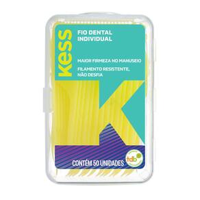 O Fio Dental Individual Kess é composto de uma pequena haste plástica com uma ponta curva que segura um pedaço de fio dental. Na sua outra extremidade, ele possui uma ponta afinada, que pode ser utilizada para auxiliar na remoção de partículas de comidas presas nos espaços interdentais ou na linha da gengiva. Por ser de fácil utilização, é indicado também para pessoas com limitações motoras. O Fio Dental Individual Kess possui filamento resistente que não desfia.
