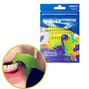 Fio Dental Com Haste Kids Basic Dinossauro - Pacote com 20 Unidades