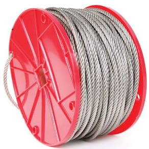 - Cable is 7 by 7 stainless steel and measures 1/16 by 125 feet