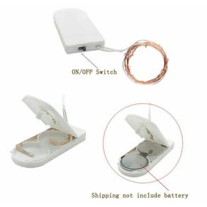 - 20 micro luzes de LED. - Cor Led Branco Quente luzes amareladas - Tamanho do fio: 2 metros - Material do fio: Cobre - Luz fixa - O fio é a prova d'água exceto compartimento de pilhas/baterias . - Funciona com pilhas ou baterias já inclusas .
