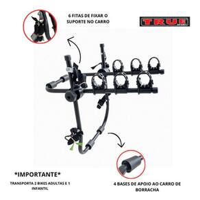 •? ?Capacidade: Transporta 3 bikes (2 adultas e 1 infantil)