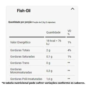 O Fish Oil é um suplemento a base de óleo de peixe, rico em ácidos graxos ômega 3 fundamental para o nosso corpo e funcionamento ideal do nosso organismo, na composição do Fish Oil contem uma concentração única de EPA(ácido eicosapentaenoico) e DHA (ácido docosaexaenoico), as duas principais substancias que desempenham papel fundamental no nosso organismo. Auxiliando em diversos processos vitais.