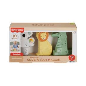 O brinquedo Animais Empilháveis de Madeira da Fisher-Price estimula a imaginação e o desenvolvimento motor das crianças ao permitir empilhar peças para formar animais como jacaré, leão e coala, ou criar criaturas imaginárias Também contribui para a habilidade de resolver problemas de forma divertida
