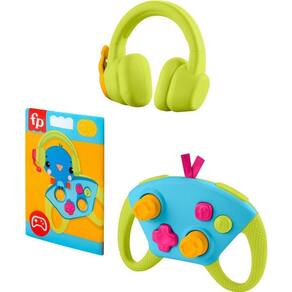 O Conjunto de Jogo Mini Gamer inclui 3 brinquedos de desenvolvimento para bebes com o mesmo estilo de itens familiares de jogadores adultos.