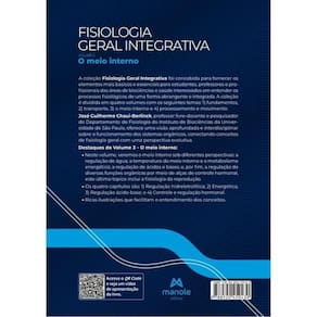 Destaques do Volume 3 – O meio interno: • Neste volume, veremos o meio interno sob diferentes perspectivas: a regulação de água; a temperatura do meio interno e o metabolismo energético; a regulação de ácidos e bases; e, por fim, a regulação de diversas funções orgânicas através de alças de controle hormonal, este último tópico inclui a fisiologia da reprodução. • Os quatro capítulos são: regulação hidreletrolítica; energética; regulação ácido-base; e controle e regulação hormonal. • Ricas ilustrações que facilitam o entendimento dos conceitos.