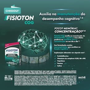 Fisioton COG 60 Cápsulas Gelatinosas Fisioton Cog é um suplemento alimentar em cápsulas gelatinosas formulado com uma associação poderosa entre Fosfatidilserina, colina, triptofano, taurina e vitamina Marca: Não Informado