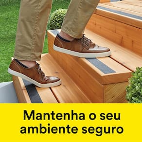 Esta fita antiderrapante para escadas e pisos é durável, confortável também para pés descalços, resiste a mofo e bolor e não racha ou descasca com o uso. É ideal para evitar escorregões e quedas e está disponível em uma variedade de tamanhos, cores e materiais. É um adesivo antiderrapante que pode ser utilizado durante longo tempo em locais com tráfego intenso. Como usar: Para utilizar o produto, a superfície deve estar limpa, seca e isenta de gordura. Deverão ser eliminados, antes da aplicação da fita, quaisquer revestimentos que estiverem sobre a superfície, tais como ceras, tintas, vernizes, etc. Ao aplicar as Fitas Antiderrapantes Safety-Walk, utilize luvas. Depois de limpar e varrer a superfície, seque-a bem. A seguir, utilize um solvente como acetona ou álcool (de preferência acetona) para remover resíduos de óleo ou graxa. Seque bem a superfície, garantindo que todo o solvente foi evaporado. Corte o Safety-Walk no tamanho desejado, arredondando as pontas, a fim de evitar pontos críticos de soltura. Não aplique sobre emendas de piso (rejuntes) mesmo que este seja de cerâmica. Respeite as distâncias recomendadas de acordo com cada tipo de aplicação. Descole apenas a extremidade da fita, e o restante solte gradativamente, removendo o papel protetor do adesivo e aplicando o Safety-Walk na posição desejada. Evite o contato com o adesivo. Pressione firmemente do centro em direção às extremidades, eliminando eventuais bolhas. Certifique-se de que as bordas estejam bem aderidas. Para remover a fita, levante uma das extremidades e puxe vagarosamente. Os resíduos são facilmente removidos com produtos de limpeza.