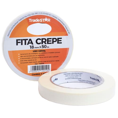 FITA ADESIVA DE 1ª LINHA, EMBALADA INDIVIDUALMENTE. Fabricada com materiais duráveis e resistentes, esta fita é perfeita para diversas aplicações, como pinturas, vedação, empacotamento e muito mais. Com um adesivo forte e de fácil remoção, a Fita Crepe p/ Uso Geral 18mm x 50m garante um acabamento perfeito sem danificar a superfície. Características Gerais: Facilidade de aplicação Remoção limpa, a fita sai da superfície em um único pedaço sem deixar resíduos Conformidade a superfícies irregulares Desenrolamento leve Não deve ser utilizada para pintura automotiva. Deve ser removida em até 24 horas após a aplicação. Marca: Tradestar Rolo: 18mm X 50m Cor: Branca Material Adesivo à base de resina e borracha