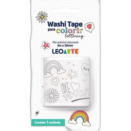 Fita Adesiva Decorada Washi Tape Para Colorir Lettering Leo Arte Washi tape é uma fita adesiva feita de origem japonesa. Sua principal característica é seu adesivo suave, que permite a colagem em diversas superfícies lisas, como parede, papel, madeira e vidro, sem deixar resíduos de cola. A Washi Tape pode ser utilizada para marcar títulos nos estudos, para colorir ou para decorar objetos, como: lápis, cadernos, agendas entre outros. Sua imaginação é o limite. Materiais indicados para colorir sua Washi tape: Canetas esferográficas, hidrocor, fineliner e marcadores em geral.