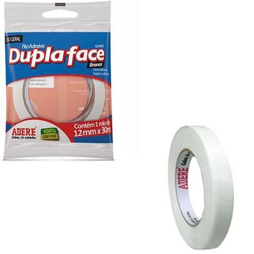 Produto: Fita Adesiva Dupla Face Branca 12mmx30m Fabricante: Adere Código: 6890807 Ean: 7896193331006 Validade: Indeterminada Tamanho Aproximado: 12mmx30m Peso Aproximado: 57 G Tipo De Produto: Fita Adesiva Dupla Face Branca Cor: Branco Composição: Papel E Adesivo A Base De Borracha