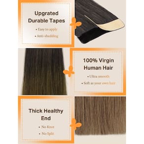 Fita de portas em extensões de cabelo humano Propósito da marca: Design de cabelo moderno e de alta qualidade para mulheres e meninas, deixe-os ter um cabelo bonito e manter um bom humor todos os dias Descrição do produto: 1. Tipo de extensões de cabelo: fita sem costura em extensões de cabelo humano. 2. Material do cabelo: 100% cabelo humano remy sem qualquer mistura. 3. Conjunto de cabelo: 2,5 g por peça, 50 g por pacote. Fita dupla face de 3,8 cm de largura. Recomendamos 1-2 pacotes para cabelos grossos, 2-3 pacotes para cabelos finos. 4. Comprimento do cabelo: 35,5 cm, 40,6 cm, 45,7 cm, 50,8 cm, 56 cm, disponível. 5. Textura: Reto, pode ser enrolado como quiser. 6. Tamanho da fita: 1 cm × 4 cm. 7. Adequado para qualquer ocasião: seja no dia a dia ou festa, casamento, Natal, etc., também é um bom presente para suas amigas 8. Cor do cabelo: o lindo desbotamento quente combina perfeitamente com a cor do seu cabelo, ombre ou destacado para você escolher. Método de cuidados com o cabelo 1. Lave o cabelo segurando suavemente, não esfregue o cabelo. A lavagem diária não é boa para suas extensões, especialmente quando você aplica o cabelo pela primeira vez. 2. Nunca use nenhum produto que contenha álcool ou etanol que possa danificar as extensões de cabelo e também desgastar o adesivo. Use condicionador sem sulfatos, bem como produtos de cabelo 100% naturais para lavar e manter as extensões de cabelo em boas condições. 3. Penteie da parte inferior até a raiz do cabelo. Penteie seu cabelo com um pente de dentes largos para evitar nós. 4. Durma com uma touca de seda ou compre uma fronha de seda para proteger o cabelo. 5. Bata o cabelo com uma toalha até que o cabelo esteja seco, é melhor secar naturalmente. - Cabelo de alta qualidade: Longa duração e reutilizável: extensões de cabelo humano 100% Remy. Pontas grossas e completas, aparência sedosa natural e toque macio, brilhante, sem emaranhados, sem queda. É igual ao nosso próprio cabelo, precisa de cuidados para durar 4 meses ou mais - Especificação de extensão de cabelo de 40 peças e uso recomendado: 3,8 cm de largura, 25 a 66 cm disponíveis. 25.4 cm: 60 g/pacote, 30.5 cm: 80 g/pacote, 35.6-61.0 cm: 100 g/pacote, 66.0 cm: 120 g/pacote. Recomendamos 1 pacote para destacar o cabelo, 2-3 pacotes para aumentar o volume do cabelo, 4-5 pacotes para cabeça inteira - Fita invisível transparente, durável e substituível: fita dupla face de 1 x 4 cm, hipoalergênica, sem queda de cabelo, não cai facilmente. A fita é leve, fácil de instalar/remover, está perfeitamente presa ao seu couro cabeludo sem qualquer desconforto - Perfeito para qualquer ocasião: escolha entre uma ampla variedade de cores populares, incluindo balayage, ombre e cores lisas, você certamente encontrará o tom perfeito para combinar com seu cabelo natural. Boa escolha para festa, casamento, escritório, aniversário, trabalho diário - Serviço de correspondência de cores: Devido à luz e ao monitor, a cor exata pode ser ligeiramente diferente da cor mostrada na imagem. Se você não tiver certeza sobre a cor das extensões de cabelo, e forneceremos um serviço de correspondência de cores.