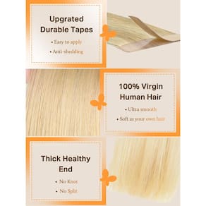 Fita de portas em extensões de cabelo humano Propósito da marca: Design de cabelo moderno e de alta qualidade para mulheres e meninas, deixe-os ter um cabelo bonito e manter um bom humor todos os dias Descrição do produto: 1. Tipo de extensões de cabelo: fita sem costura em extensões de cabelo humano. 2. Material do cabelo: 100% cabelo humano remy sem qualquer mistura. 3. Conjunto de cabelo: 2,5 g por peça, 50 g por pacote. Fita dupla face de 3,8 cm de largura. Recomendamos 1-2 pacotes para cabelos grossos, 2-3 pacotes para cabelos finos. 4. Comprimento do cabelo: 35,5 cm, 40,6 cm, 45,7 cm, 50,8 cm, 56 cm, disponível. 5. Textura: Reto, pode ser enrolado como quiser. 6. Tamanho da fita: 1 cm × 4 cm. 7. Adequado para qualquer ocasião: seja no dia a dia ou festa, casamento, Natal, etc., também é um bom presente para suas amigas 8. Cor do cabelo: o lindo desbotamento quente combina perfeitamente com a cor do seu cabelo, ombre ou destacado para você escolher. Método de cuidados com o cabelo 1. Lave o cabelo segurando suavemente, não esfregue o cabelo. A lavagem diária não é boa para suas extensões, especialmente quando você aplica o cabelo pela primeira vez. 2. Nunca use nenhum produto que contenha álcool ou etanol que possa danificar as extensões de cabelo e também desgastar o adesivo. Use condicionador sem sulfatos, bem como produtos de cabelo 100% naturais para lavar e manter as extensões de cabelo em boas condições. 3. Penteie da parte inferior até a raiz do cabelo. Penteie seu cabelo com um pente de dentes largos para evitar nós. 4. Durma com uma touca de seda ou compre uma fronha de seda para proteger o cabelo. 5. Bata o cabelo com uma toalha até que o cabelo esteja seco, é melhor secar naturalmente. - Cabelo de alta qualidade: Longa duração e reutilizável: extensões de cabelo humano 100% Remy. Pontas grossas e completas, aparência sedosa natural e toque macio, brilhante, sem emaranhados, sem queda. É igual ao nosso próprio cabelo, precisa de cuidados para durar 4 meses ou mais - Especificação de extensão de cabelo de 40 peças e uso recomendado: 3,8 cm de largura, 25 a 66 cm disponíveis. 25.4 cm: 60 g/pacote, 30.5 cm: 80 g/pacote, 35.6-61.0 cm: 100 g/pacote, 66.0 cm: 120 g/pacote. Recomendamos 1 pacote para destacar o cabelo, 2-3 pacotes para aumentar o volume do cabelo, 4-5 pacotes para cabeça inteira - Fita invisível transparente, durável e substituível: fita dupla face de 1 x 4 cm, hipoalergênica, sem queda de cabelo, não cai facilmente. A fita é leve, fácil de instalar/remover, está perfeitamente presa ao seu couro cabeludo sem qualquer desconforto - Perfeito para qualquer ocasião: escolha entre uma ampla variedade de cores populares, incluindo balayage, ombre e cores lisas, você certamente encontrará o tom perfeito para combinar com seu cabelo natural. Boa escolha para festa, casamento, escritório, aniversário, trabalho diário - Serviço de correspondência de cores: Devido à luz e ao monitor, a cor exata pode ser ligeiramente diferente da cor mostrada na imagem. Se você não tiver certeza sobre a cor das extensões de cabelo, e forneceremos um serviço de correspondência de cores.