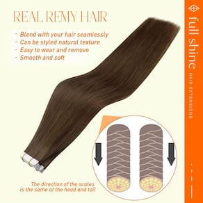 Extensões de cabelo Ombre Balayage Tape in Hair é o símbolo da Full Shine Hair. Se você está cansado da cor pura básica, escolha a cor Ombre Balayage é uma escolha correta, experimente! Detalhes do produto: Material do cabelo: cabelo humano real Textura: Liso e tem uma onda natural quando molhado ou deixado para secar ao ar livre ou difuso. Fita: Fita branca americana Tamanho da fita: 0,8 cm x 4 cm Conjunto: 2,5 g/peça, 20 peças/pacote, 50 g/pacote Aviso antes de fazer o pedido 1. Quantidade necessária: 150-250 gramas, 3-5 pacotes são recomendados para toda a cabeça. Se você tiver cabelo curto, reduza 1 pacote. 2. Sobre o estilo: nossas extensões de cabelo com fita humana são exatamente como o seu próprio cabelo e podem ser modeladas, enroladas ou alisadas conforme desejado. O DIY diário reduzirá a vida útil das fitas, use mais nutrição. 3. Sobre a cor: nossa fita de cabelo pode ser mais escura, mas não mais clara. Sempre teste um pequeno pedaço quando você tingir. 4. Sobre a lavagem: lave seu próprio cabelo sem condicionador quando for a primeira vez para aplicar em . Não lave o cabelo pelo menos 72 horas após a fixação, a lavagem diária não é boa para suas extensões. Use xampu e condicionador sem sulfato no cabelo 5. Cuidados: sugerimos que você use o óleo para reviver o cabelo seco; dormir com uma touca de seda ou compre uma fronha de seda para proteger o cabelo. 6. Sobre o uso: O cabelo pode ser reaproveitado com fita de substituição. Sugerimos ajustar a fita a cada 2-5 semanas para manter o cabelo bem. Encontre beleza e confiança com Full Shine Hair. - Sobre a instalação: o sanduíche é uma boa maneira, as duas peças devem ser alinhadas, não adicione muito cabelo no meio, ou ele cairá; você pode cortar suavemente as fitas uma vez com um alisador de cabelo, não aqueça a fita usando temperaturas excessivamente altas - Aparência natural: extensões de cabelo com fita adesiva podem adicionar estilo e volume ao seu cabelo com resultados naturais e discretos; ao escolher a cor que se adapta ao seu tom de cabelo, você pode desfrutar de cabelos mais cheios sem que ninguém perceba que você está usando extensões de cabelo - Disponível em vários tons: extensões de cabelo humano com fita adesiva oferecem muitos tons diferentes, balayage e ombré e muitas cores puras; você também pode criar sua mistura preferida usando dois ou três tons diferentes para obter um visual natural - Dupla face, invisível e substituível: como eles são muito leves e pegajosos o suficiente, eles se unem bem ao seu cabelo real sem qualquer desconforto. O uso adequado não danificará seu couro cabeludo e não causará nenhum desconforto. Você pode usar um removedor de adesivo ao remover - Como desembaraçar: nunca durma com extensões de cabelo molhado; sempre certifique-se de que o cabelo esteja seco e puxado para cima; use um pente de dentes largos nas pontas do cabelo, alise o cabelo, aplique azeite de oliva. Também pode ser utilizado com spray desembaraçante - Mais opções de penteado: se você quiser experimentar um novo visual, as extensões de cabelo com fita Full Shine podem ajudá-lo a alcançar seus objetivos de cabelo desejados; já que são cabelos humanos reais, que podem ser lavados, fortalecidos e enrolados usando um alisador - Uso recomendado: para cabelos grossos, 1-2 pacotes para aumentar o peso e 3-4 pacotes para aumentar o comprimento; para cabelos finos, 3-4 pacotes para aumentar o peso e 1-2 pacotes para aumentar o comprimento; você só precisará visitar o salão a cada 3 a 6 semanas após as extensões estarem em - Menos manutenção e antes da instalação: ao contrário de outros métodos, as extensões de cabelo com fita adesiva exigem menos manutenção; lave sua fita em extensões e seque com secador, não use condicionador ou óleo antes da instalação; é melhor você ir a um salão para instalar - Após a instalação: não lave a fita adesiva no cabelo em 48 horas, sugerimos que você use um condicionador melhor para cuidados profundos; nunca coloque o condicionador nas raízes do seu cabelo de qualquer maneira; isso pode fazer com que suas extensões de cabelo escorreguem