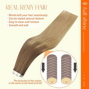 Extensões de cabelo Ombre Balayage Tape in Hair é o símbolo da Full Shine Hair. Se você está cansado da cor pura básica, escolha a cor Ombre Balayage é uma escolha correta, experimente! Detalhes do produto: Material do cabelo: cabelo humano real Textura: Liso e tem uma onda natural quando molhado ou deixado para secar ao ar livre ou difuso. Fita: Fita branca americana Tamanho da fita: 0,8 cm x 4 cm Conjunto: 2,5 g/peça, 20 peças/pacote, 50 g/pacote Aviso antes de fazer o pedido 1. Quantidade necessária: 150-250 gramas, 3-5 pacotes são recomendados para toda a cabeça. Se você tiver cabelo curto, reduza 1 pacote. 2. Sobre o estilo: nossas extensões de cabelo com fita humana são exatamente como o seu próprio cabelo e podem ser modeladas, enroladas ou alisadas conforme desejado. O DIY diário reduzirá a vida útil das fitas, use mais nutrição. 3. Sobre a cor: nossa fita de cabelo pode ser mais escura, mas não mais clara. Sempre teste um pequeno pedaço quando você tingir. 4. Sobre a lavagem: lave seu próprio cabelo sem condicionador quando for a primeira vez para aplicar em . Não lave o cabelo pelo menos 72 horas após a fixação, a lavagem diária não é boa para suas extensões. Use xampu e condicionador sem sulfato no cabelo 5. Cuidados: sugerimos que você use o óleo para reviver o cabelo seco; dormir com uma touca de seda ou compre uma fronha de seda para proteger o cabelo. 6. Sobre o uso: O cabelo pode ser reaproveitado com fita de substituição. Sugerimos ajustar a fita a cada 2-5 semanas para manter o cabelo bem. Encontre beleza e confiança com Full Shine Hair. - Sobre a instalação: o sanduíche é uma boa maneira, as duas peças devem ser alinhadas, não adicione muito cabelo no meio, ou ele cairá; você pode cortar suavemente as fitas uma vez com um alisador de cabelo, não aqueça a fita usando temperaturas excessivamente altas - Aparência natural: extensões de cabelo com fita adesiva podem adicionar estilo e volume ao seu cabelo com resultados naturais e discretos; ao escolher a cor que se adapta ao seu tom de cabelo, você pode desfrutar de cabelos mais cheios sem que ninguém perceba que você está usando extensões de cabelo - Disponível em vários tons: extensões de cabelo humano com fita adesiva oferecem muitos tons diferentes, balayage e ombré e muitas cores puras; você também pode criar sua mistura preferida usando dois ou três tons diferentes para obter um visual natural - Dupla face, invisível e substituível: como eles são muito leves e pegajosos o suficiente, eles se unem bem ao seu cabelo real sem qualquer desconforto. O uso adequado não danificará seu couro cabeludo e não causará nenhum desconforto. Você pode usar um removedor de adesivo ao remover - Como desembaraçar: nunca durma com extensões de cabelo molhado; sempre certifique-se de que o cabelo esteja seco e puxado para cima; use um pente de dentes largos nas pontas do cabelo, alise o cabelo, aplique azeite de oliva. Também pode ser utilizado com spray desembaraçante - Mais opções de penteado: se você quiser experimentar um novo visual, as extensões de cabelo com fita Full Shine podem ajudá-lo a alcançar seus objetivos de cabelo desejados; já que são cabelos humanos reais, que podem ser lavados, fortalecidos e enrolados usando um alisador - Uso recomendado: para cabelos grossos, 1-2 pacotes para aumentar o peso e 3-4 pacotes para aumentar o comprimento; para cabelos finos, 3-4 pacotes para aumentar o peso e 1-2 pacotes para aumentar o comprimento; você só precisará visitar o salão a cada 3 a 6 semanas após as extensões estarem em - Menos manutenção e antes da instalação: ao contrário de outros métodos, as extensões de cabelo com fita adesiva exigem menos manutenção; lave sua fita em extensões e seque com secador, não use condicionador ou óleo antes da instalação; é melhor você ir a um salão para instalar - Após a instalação: não lave a fita adesiva no cabelo em 48 horas, sugerimos que você use um condicionador melhor para cuidados profundos; nunca coloque o condicionador nas raízes do seu cabelo de qualquer maneira; isso pode fazer com que suas extensões de cabelo escorreguem