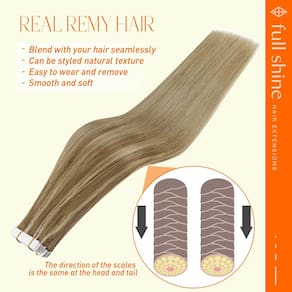 Extensões de cabelo Ombre Balayage Tape in Hair é o símbolo da Full Shine Hair. Se você está cansado da cor pura básica, escolha a cor Ombre Balayage é uma escolha correta, experimente! Detalhes do produto: Material do cabelo: cabelo humano real Textura: Liso e tem uma onda natural quando molhado ou deixado para secar ao ar livre ou difuso. Fita: Fita branca americana Tamanho da fita: 0,8 cm x 4 cm Conjunto: 2,5 g/peça, 20 peças/pacote, 50 g/pacote Aviso antes de fazer o pedido 1. Quantidade necessária: 150-250 gramas, 3-5 pacotes são recomendados para toda a cabeça. Se você tiver cabelo curto, reduza 1 pacote. 2. Sobre o estilo: nossas extensões de cabelo com fita humana são exatamente como o seu próprio cabelo e podem ser modeladas, enroladas ou alisadas conforme desejado. O DIY diário reduzirá a vida útil das fitas, use mais nutrição. 3. Sobre a cor: nossa fita de cabelo pode ser mais escura, mas não mais clara. Sempre teste um pequeno pedaço quando você tingir. 4. Sobre a lavagem: lave seu próprio cabelo sem condicionador quando for a primeira vez para aplicar em . Não lave o cabelo pelo menos 72 horas após a fixação, a lavagem diária não é boa para suas extensões. Use xampu e condicionador sem sulfato no cabelo 5. Cuidados: sugerimos que você use o óleo para reviver o cabelo seco; dormir com uma touca de seda ou compre uma fronha de seda para proteger o cabelo. 6. Sobre o uso: O cabelo pode ser reaproveitado com fita de substituição. Sugerimos ajustar a fita a cada 2-5 semanas para manter o cabelo bem. Encontre beleza e confiança com Full Shine Hair. - Sobre a instalação: o sanduíche é uma boa maneira, as duas peças devem ser alinhadas, não adicione muito cabelo no meio, ou ele cairá; você pode cortar suavemente as fitas uma vez com um alisador de cabelo, não aqueça a fita usando temperaturas excessivamente altas - Aparência natural: extensões de cabelo com fita adesiva podem adicionar estilo e volume ao seu cabelo com resultados naturais e discretos; ao escolher a cor que se adapta ao seu tom de cabelo, você pode desfrutar de cabelos mais cheios sem que ninguém perceba que você está usando extensões de cabelo - Disponível em vários tons: extensões de cabelo humano com fita adesiva oferecem muitos tons diferentes, balayage e ombré e muitas cores puras; você também pode criar sua mistura preferida usando dois ou três tons diferentes para obter um visual natural - Dupla face, invisível e substituível: como eles são muito leves e pegajosos o suficiente, eles se unem bem ao seu cabelo real sem qualquer desconforto. O uso adequado não danificará seu couro cabeludo e não causará nenhum desconforto. Você pode usar um removedor de adesivo ao remover - Como desembaraçar: nunca durma com extensões de cabelo molhado; sempre certifique-se de que o cabelo esteja seco e puxado para cima; use um pente de dentes largos nas pontas do cabelo, alise o cabelo, aplique azeite de oliva. Também pode ser utilizado com spray desembaraçante - Mais opções de penteado: se você quiser experimentar um novo visual, as extensões de cabelo com fita Full Shine podem ajudá-lo a alcançar seus objetivos de cabelo desejados; já que são cabelos humanos reais, que podem ser lavados, fortalecidos e enrolados usando um alisador - Uso recomendado: para cabelos grossos, 1-2 pacotes para aumentar o peso e 3-4 pacotes para aumentar o comprimento; para cabelos finos, 3-4 pacotes para aumentar o peso e 1-2 pacotes para aumentar o comprimento; você só precisará visitar o salão a cada 3 a 6 semanas após as extensões estarem em - Menos manutenção e antes da instalação: ao contrário de outros métodos, as extensões de cabelo com fita adesiva exigem menos manutenção; lave sua fita em extensões e seque com secador, não use condicionador ou óleo antes da instalação; é melhor você ir a um salão para instalar - Após a instalação: não lave a fita adesiva no cabelo em 48 horas, sugerimos que você use um condicionador melhor para cuidados profundos; nunca coloque o condicionador nas raízes do seu cabelo de qualquer maneira; isso pode fazer com que suas extensões de cabelo escorreguem