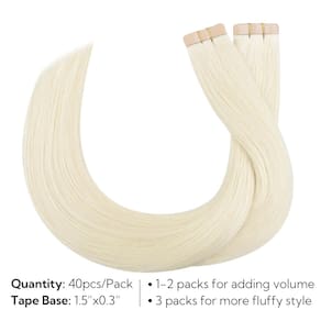 HOTBANANA Fita Remy em extensões de cabelo humano, sem emaranhamento, sem queda, pode ser permanente e tingida, você pode fazer qualquer penteado que quiser. A fita nas extensões de cabelo é leve e confortável, sem pressão, fácil de instalar e remover, perfeitamente fixada ao couro cabeludo sem qualquer desconforto ou dano ao cabelo. A fita de cabelo humano em extensões deixa seu cabelo mais cheio e saudável. Fácil de criar cores de cabelo modernas sem danificar seu cabelo natural. Aumente o comprimento sem esforço para alcançar o penteado desejado. O comprimento da fita HoTBANA nas extensões de cabelo é de 25 a 66 cm, textura: Liso.