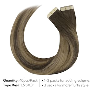 HOTBANANA Fita Remy em extensões de cabelo humano, sem emaranhamento, sem queda, pode ser permanente e tingida, você pode fazer qualquer penteado que quiser. A fita nas extensões de cabelo é leve e confortável, sem pressão, fácil de instalar e remover, perfeitamente fixada ao couro cabeludo sem qualquer desconforto ou dano ao cabelo. A fita de cabelo humano em extensões deixa seu cabelo mais cheio e saudável. Fácil de criar cores de cabelo modernas sem danificar seu cabelo natural. Aumente o comprimento sem esforço para alcançar o penteado desejado. O comprimento da fita HoTBANA nas extensões de cabelo é de 25 a 66 cm, textura: Liso. - Pacote generoso de 40 peças: 40 peças premium, com abas de fita de tamanho perfeito de 1 x 4 cm, um pacote oferece cobertura total, garantindo uma aplicação invisível e sem esforço e um visual naturalmente impecável - Longa duração e resistente: Base de fita com forte aderência e não sobrecarrega o couro cabeludo, ficará mais firme e durará mais se aquecer ligeiramente com ferro. Pode permanecer na sua cabeça por 4-6 semanas, fácil de remover com removedor sem danificar o cabelo - Cabelo humano real de alta qualidade: a HoTBANANA está comprometida em fornecer a você a melhor experiência de uso. Cabelo humano real não danificado, confortável de usar, sem emaranhado. Pode ser tingido, enrolado, como seu próprio cabelo. Pode usar condicionador de cabelo para cuidar da extensão do cabelo - Segurança do material e confortável: a fita transparente é segura de usar, leve. A fita nas extensões de cabelo é ultramacia, pode se misturar perfeitamente com o seu próprio cabelo. Quando você usar nosso cabelo, você achará confortável o suficiente para esquecer de usar extensões de cabelo - para você escolher: nossas extensões de cabelo com fita vêm em mais de 20 tons de cores diferentes. Use o processo de tingimento tecnologicamente maduro para criar uma cor semelhante ao cabelo da maioria das pessoas. Você pode compartilhar fotos conosco, ajudaremos você a escolher a cor imediatamente