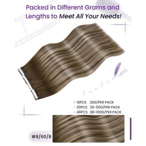As extensões de cabelo humano LaaVoo Tape in Hair são costuradas à mão e depois presas a uma fita adesiva dupla face durável. A fita remy LaaVoo em extensões de cabelo pode ajudar você a ganhar cores volumosas ou volume exuberante rapidamente. Nossas extensões de fita são feitas de cabelo humano Remy, fita adesiva e invisível. Sem danos ao seu próprio cabelo. Macio, brilhante, livre de queda e emaranhamento. Você pode colocar seu cabelo em dois pedaços de fita. Fácil de instalar e remover. É sem costura e invisível, ninguém sabe que você está usando cola em extensões de cabelo. Especificações: Tipo de extensões de cabelo: fita na extensão do cabelo Qualidade: Remy cabelo humano real Quantidade: 20 peças (4 cm x 0,8 cm) por pacote, 40.6-61.0 cm todos são 50g/conjunto Textura do cabelo: Liso Como aplicar 1. Lave o cabelo: lave e seque o cabelo completamente antes de começar. 2. Reúna uma parte do seu cabelo: Esta seção de cabelo será colocada entre duas extensões. É importante que a "fita" adesiva na extensão superior toque a da extensão inferior, para que as duas fiquem juntas. 3. Prenda a extensão: faça duas tiras de extensão de fita coladas com uma parte do seu próprio cabelo entre elas. Observe que não coloque as tramas muito perto das bordas do seu couro cabeludo. 4. Certifique-se de selar a fita com uma chapinha para máxima aderência. Dicas quentes 1. Lembre-se de não lavar o cabelo dentro de 48 horas após aplicar extensões de cabelo com fita. 2. Escolha um xampu suave para hidratar seu cabelo. Um condicionador é essencial para cuidar do cabelo, mas não faça muito com ele. 3. A vida útil da fita de cabelo depende muito da forma como você o mantém. Quanto mais cuidadosamente você tratá-lo, mais tempo ele vai durar. A LaaVoo deseja que você seja única, bonita e confiante todos os dias! - Leve e invisível: fita LaaVoo em extensões de cabelo humano combina com o seu cabelo, proporcionando conforto com um design leve. A LaaVoo oferece uma aparência natural devido ao seu delicado equilíbrio de peso e cobertura - Cabelo humano real: a fita de cabelo humano LaaVoo em extensões é meticulosamente trabalhada a partir de cabelo humano real. Nosso exclusivo processo de tratamento sem ácido garante a longevidade das extensões, mantendo-as saudáveis, brilhantes e em excelentes condições. Oferecendo 40 peças por pacote, recomendamos o uso de 1 a 2 pacotes para uma transformação completa da cabeça - Versatilidade no estilo: com fita de extensão de cabelo LaaVoo dentro, a versatilidade do estilo está ao seu alcance. Disponível em e comprimentos, nossas extensões podem ser estilizadas para criar visuais diferentes, desde o uso diário até ocasiões especiais; eles fazem a transição sem esforço de cabelo curto ou fino para mechas volumosas e longas para uma transformação completa do cabelo que grita natural - Fitas de retenção: não se preocupe com as fitas escorregando! Utilizamos cola branca americana profissional para boa aderência. Cada pacote de nossa fita preta em extensões de cabelo humano real inclui fitas de substituição, permitindo um processo fácil de instalação e remoção, requer apenas manutenção de rotina simples. A reutilização também é possível com nossas extensões - Você precisa saber: alertamos pessoas com cabelos muito finos e propensos a quebras ou couro cabeludo sensível, pois o produto pode não ser adequado para fita LaaVoo em extensões de cabelo humano. Por favor, entenda que as diferenças de cor são inevitáveis devido à resolução da tela e iluminação