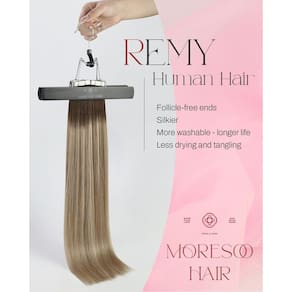 Se você quiser uma extensão elegante que seja simples, sedosa e duradoura, as extensões de cabelo Moresoo Virgin são a melhor escolha para você! Nossa fita em extensões de cabelo humano é feita com 100% cabelo humano e fita adesiva hipoalergênica premium que é forte, segura e não danifica. Detalhes do cabelo: Material do cabelo: Cabelo humano virgem Tamanho da fita: 1 cm x 4 cm Textura: Liso e uma onda natural após a lavagem é normal Como instalar a fita adesiva nas extensões de cabelo: Passo 1: Use o pente para pegar uma fatia fina de cabelo natural tão larga quanto suas extensões de fita. Passo 2: Pressione o cabelo natural para baixo na fita, deixando um espaço de 2,5 a 5 cm entre o couro cabeludo e a extensão. Passo 3: Retire a segunda fita e coloque esta peça diretamente sobre a primeira, colocando o cabelo natural no meio e selando a fita com uma chapinha para máxima aderência. Passo 4: Repita para a cabeça inteira Se você não tiver certeza sobre fazer esse processo em casa, recomendamos que você procure um estilista profissional treinado para fazer extensões de cabelo com fita. Dicas para lembrar: 1. Não penteie ou escove as extensões de cabelo enquanto o cabelo estiver molhado. Nunca durma com extensões de cabelo molhadas. 2. Certifique-se de não lavar o cabelo pelo menos 3 dias após a aplicação, caso contrário, isso causará deslizamento. 3. A cada 4-6 semanas, suas extensões de cabelo precisarão ser reaplicadas para aproximar as ligações do couro cabeludo e manter seu cabelo saudável. 4. Ao usar condicionador, condicione apenas do meio do cano até as pontas. Não aplique condicionador no couro cabeludo ao usar fita adesiva em extensões de cabelo. 5. As extensões de cabelo com fita adesiva podem ser facilmente removidas com o removedor e não danificam o cabelo. Não hesite em entrar em contato conosco sobre seus problemas. Faremos o nosso melhor para tornar cada cliente uma experiência de compra feliz na Moresoo. - Qualidade do cabelo: cabelo humano Remy, cola branca importada. As extensões de cabelo Moresoo são atualizadas em qualidade; usando cabelo real Remy, que é mais lavável e pode ser utilizado por mais tempo; a cola branca importada é firme e mais fácil de remover - Especificações: 30 a 55 cm, 20 peças/pacote. 30 gramas; 35 a 55 cm, 50 gramas. 2-3 pacotes aumentam a espessura; 3-4 pacotes aumentam o comprimento. Com o mesmo peso, a espessura ficará mais fina com o comprimento - Sobre o estilo: as extensões de cabelo Moresoo suportam alisamento e ondulação; a temperatura é controlada abaixo de 180°C; ao pentear uma única peça, a temperatura não deve exceder 150 °C, uma temperatura muito alta pode causar descoloração - Locais adequados: As extensões de cabelo com fita Moresoo são adequadas para qualquer ocasião, podem encher seu cabelo em um curto espaço de tempo. Adequado para casamentos, festas, festivais e atividades comunitárias. A cor adiciona destaques à maquiagem diária - Boa experiência: a Moresoo oferece respostas e soluções de problemas antes e depois das vendas. Não importa o que você precisa, apenas vamos saber