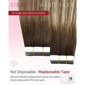 1. As extensões de cabelo com fita Moresoo são fáceis de usar e muito discretas. Eles se misturam perfeitamente com o seu cabelo sentados no seu couro cabeludo. Sua invisibilidade ajuda a garantir que ninguém perceba que você os consertou, independentemente do estilo que você escolher para pentear. A fita transparente depois de instalada não pode ser detectada facilmente e você pode realizar suas atividades diárias sem se preocupar que a fita apareça. 2. A fita nas extensões é suave e muito leve, portanto, as torna 100% seguras para os cabelos frágeis, já que não exercem muita tensão sobre eles. 3. Rápido e fácil de aplicar e manter. Extensões de cabelo com fita adesiva é a escolha perfeita para qualquer mulher ocupada que tenha pouco tempo para fazer o cabelo. É rápido e muito fácil de consertar, além de permitir o estilo de várias maneiras. 4. As fitas podem ser substituídas É comum que as fitas sejam acidentalmente danificadas de várias maneiras quando a fita nas extensões de cabelo está sendo removida. No entanto, você não precisa se preocupar, pois pode substituí-los por fitas de dupla face e de alta qualidade. Isso ajuda muito a prolongar a vida útil das extensões de cabelo humano. 5. Fita de alta qualidade Extensões de cabelo Moresoo Tape feitas de fita branca americana de alta qualidade para maior vida útil e maior adesão. Cuidados cuidadosos prolongam a vida útil para 2 a 18 meses. - Qualidade do cabelo: cabelo humano Remy, cola branca importada. As extensões de cabelo Moresoo são atualizadas em qualidade; usando cabelo real Remy, que é mais lavável e pode ser utilizado por mais tempo; a cola branca importada é firme e mais fácil de remover - Especificações: 16-22 polegadas, 20 peças, 50 gramas/pacote. 2-3 pacotes aumentam a espessura; 3-4 pacotes aumentam o comprimento. Com o mesmo peso, a espessura ficará mais fina com o comprimento - Sobre o estilo: as extensões de cabelo Moresoo suportam alisamento e ondulação; a temperatura é controlada abaixo de 180°C; ao pentear uma única peça, a temperatura não deve exceder 150 °C, uma temperatura muito alta pode causar descoloração - Locais adequados: As extensões de cabelo com fita Moresoo são adequadas para qualquer ocasião, podem encher seu cabelo em um curto espaço de tempo. Adequado para casamentos, festas, festivais e atividades comunitárias. A cor adiciona destaques à maquiagem diária - Boa experiência: a Moresoo oferece respostas e soluções de problemas antes e depois das vendas. Não importa o que você precisa, apenas vamos saber