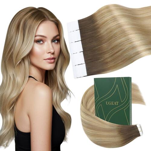 Extensões de cabelo Ugeat Tape in Hair Real Human Hair Fita Ugeat em extensões de cabelo humano traz uma nova experiência de beleza para pessoas de todo o mundo. Se você quiser estender seu cabelo ou quiser adicionar destaques sem danificar seu próprio cabelo, a fita de cabelo Ugeat Human em extensões é a sua escolha ideal. Fita Ugeat em extensões de cabelo humano é mais leve, mais confortável e fácil de usar. A fita invisível e a cor balayage natural fazem você se destacar da multidão. Como usar: Lave e seque o cabelo como de costume. (2) Pegue um fio fino de cabelo onde você precisa da extensão e levante-o. (3) Retire a fita na extensão do cabelo, prenda o fio de cabelo para cima e para baixo com duas fitas em pedaços de extensão de cabelo. (4) Pressione com os dedos por 5 a 10 segundos para consertá-lo ou use um grampo de aquecimento médio por 2 a 3 segundos. (5) Repita as etapas acima para obter resultados. Dicas: Penteie suavemente o cabelo antes de lavar e não use condicionador antes de usar fita adesiva nas extensões de cabelo. Penteie as extensões de cabelo com um pente de dentes largos e certifique-se de que as extensões de cabelo estejam secas. Comece a pentear de baixo para cima. Use xampu e condicionador suaves ao cuidar das extensões de cabelo, e recomenda-se secar naturalmente. Não lave o cabelo por 48 horas após usar extensões de cabelo com fita adesiva. Use removedor de fita profissional ao remover a fita nas extensões de cabelo e não as rasgue diretamente. - ?Leve e confortável?A fita de fita Ugeat nas extensões de cabelo é fina, tornando a estrutura de extensão de cabelo mais leve, mais confortável de usar e reduzindo a pressão no couro cabeludo. Não parecerá pesado mesmo se utilizado por um longo tempo. Tem bom conforto, você não precisa se preocupar com as extensões de cabelo caindo ou se sentindo desconfortável. - ?Fita forte?A fita de extensão de cabelo humano Ugeat usa fita dupla face transparente com forte poder adesivo e ligeira flexibilidade, o que pode garantir uma fusão natural e perfeita do seu cabelo natural e extensões de cabelo. Além disso, a fita forte pode evitar que as extensões de cabelo caiam facilmente. A fita é substituível e cada pacote vem com fita de substituição. - ?Fácil de instalar e remover?A fita Ugeat em extensões de cabelo humano vem com fitas pré-instaladas, sem necessidade de etapas complicadas. Se você tiver experiência com extensões de cabelo, você pode usá-lo em casa sozinho. Seja na vida diária, trabalho, festa, casamento, formatura, encontro romântico ou outras ocasiões especiais, pode ajudar você a mostrar seu estilo pessoal. - ?Material de extensões de cabelo?A fita Ugeat nas extensões de cabelo humano é feita de cabelo humano real para garantir que o cabelo tenha uma qualidade delicada, macia e naturalmente durável. As extensões de cabelo humano com fita adesiva são macias e suaves e podem ser estilizadas como seu próprio cabelo natural para atender às suas diferentes necessidades de moda. - ?Especificações?As extensões de cabelo com fita Ugeat contém 20 peças por pacote, e o tamanho do cabelo varia de 30 a 61 cm. Você pode escolher as dimensões perfeitas para o seu tipo de cabelo. Se você está buscando um volume de cabelo mais grosso ou experimentando um novo penteado, as extensões de cabelo com fita Ugeat podem facilmente atender às suas necessidades, trazendo confiança e beleza. Você pode usar de 2 a 3 pacotes para obter um efeito de cabeça completa.