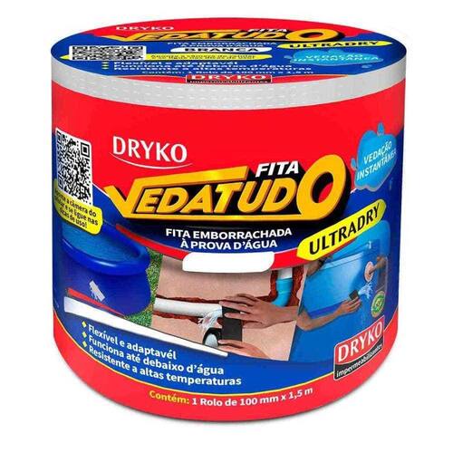 A DRYKOFITA VEDATUDO ULTRADRY é uma fita adesiva emborrachada, grossa e flexível de alta adesividade e performance para reparos rápidos de diversas superfícies. Ela adere em plástico, metal, alumínio, aço, borracha, madeira, vinil, acrílico, entre outros.