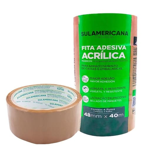 Fita Adesiva Empacotamento Sulamericana 48mmX40m Marrom c/4 Fita adesiva marrom: praticidade e segurança para suas embalagens. Ideal para empacotar levemente, fechar envelopes e lacrar pacotes com praticidade. Versátil e resistente, garante a proteção de seus itens.