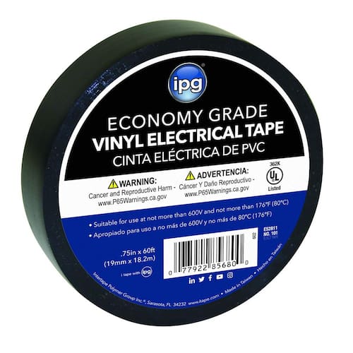 Fita isolante elétrica de vinil preto que consiste em uma película macia de PVC estabilizada “plastificada” revestida com um adesivo à base de borracha não corrosiva.