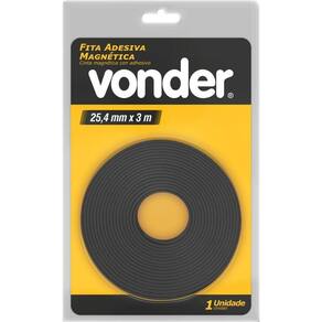 Marca: VonderCódigo: 1199254300Conteúdo da embalagem1 Rolo de fita adesiva magnética.Destaques e diferenciais:De fácil instalação, conta com boa flexibilidade e película protetora do adesivo.Aplicações e dicas de uso:Indicada para utilização com objetos leves, como fixar fotografias em quadros magnéticos ou ímãs de geladeira.Material tipo/composição : Imã flexível e adesivo Largura: 25,4 mm Comprimento: 3 metros Espessura: 1,5 mm Capacidade de carga: 62 g por cm Massa aproximada peso kg : 0,013 kg - E CDC : legal: 90 dias Marca: Não Informado