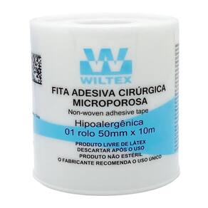 Fita Adesiva Cirúrgica Microporosa 50 mm x 10 m Branca - Wiltex Fixação segura e conforto para todos os tipos de curativos e dispositivos médicos A Fita Adesiva Cirúrgica Microporosa Wiltex é a solução ideal para fixar curativos, bandagens e dispositivos médicos de forma prática e eficaz. Desenvolvida com materiais de alta qualidade, é hipoalergênica e livre de látex, garantindo segurança e conforto até mesmo para peles sensíveis. Características do Produto: Hipoalergênica: Indicada para uso em todos os tipos de pele, minimizando o risco de irritações. Livre de Látex: Mais segurança e compatibilidade para pessoas alérgicas. Não Estéril: Ideal para aplicações gerais em ambientes clínicos e domiciliares. Composição: Produzida com tecido-não-tecido de poliuretano termoplástico, revestido com adesivo médico antialérgico sensível à pressão. Dimensões: Largura de 50 mm e comprimento de 10 m por rolo. Cor: Branco, proporcionando discrição e aparência profissional. Indicações de Uso: Fixação de curativos em feridas. Aplicação de bandagens e gazes. Fixação de dispositivos médicos, como cateteres e sondas. Benefícios: Adesão Eficiente: Fixa com firmeza sem causar desconforto ou dor na remoção. Confortável e Discreta: Ideal para uso prolongado. Armazenamento Seguro: Mantém a qualidade quando armazenada em locais ventilados e secos, com umidade relativa inferior a 80% e temperatura entre 5C e 40C. Informações Adicionais: Registro MS: 10150470603 Kit Contém: 6 unidades por embalagem Invista em uma solução prática e de alta qualidade para o cuidado com a saúde. Fita Adesiva Cirúrgica Microporosa Wiltex: segurança e conforto em cada aplicação Marca: Não Informado Ean: 17899780148121