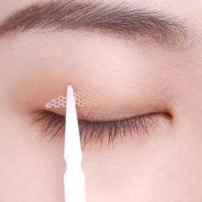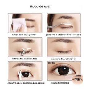 Para aplicar, basta lavar o rosto, principalmente a região dos olhos, e secar bem com uma toalha macia. Use uma pinça para remover a fita da dupla face e aplique suavemente nas pálpebras superiores. Repita o mesmo procedimento no outro olho. A cor do adesivo é bege claro, adequada para todos os tons de pele.