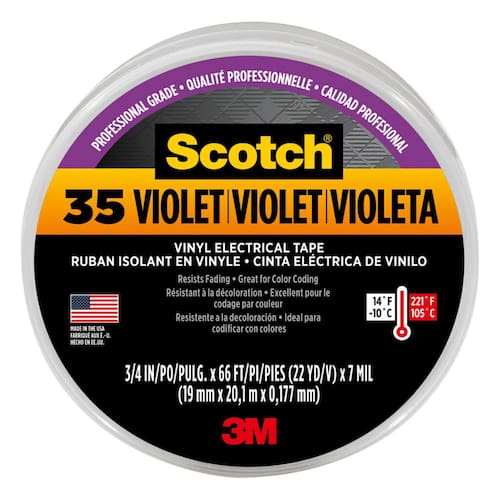 Fita Elétrica 3M Scotch Vinyl Color Coding 35, 3/10.2 cm x 20.1 m, Violeta - 11271-BA-5