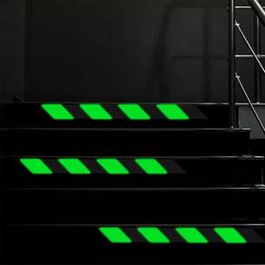Esta fita antiderrapante preta, possui faixas verde fluorescente, ajudando a evitar acidentes e proporcionando maior segurança.