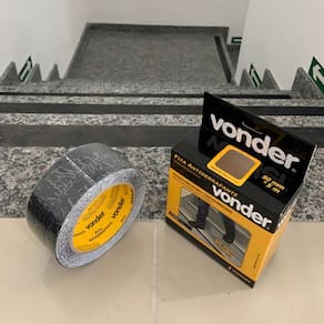 Este produto é autoadesivo, o que facilita muito a aplicação. Basta remover a proteção e colar no local desejado. A cor preta é discreta e combina com qualquer decoração. Além disso, a fita é feita de lixa, o que aumenta a aderência e reduz o risco de acidentes.