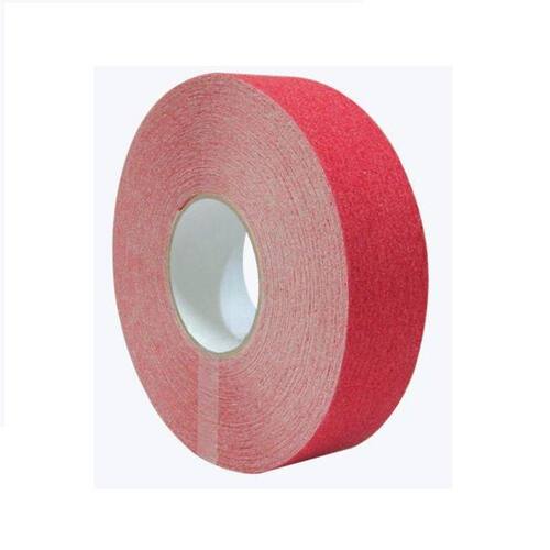 Fita Antiderrapante Vermelha - 48mm x 30m é indicada para prevenção de acidentes em escadas, rampas, áreas escorregadias, etc. Aplicação: A Superfície de aplicação deve ser lisa, seca e sem poeira. Aplicação em piso rugoso, úmido ou sujo pode causar mal fixação da fita. Não indicada em ambientes de temperatura abaixo de 10 graus ou acima de 40 graus. Nestas condições o adesivo poderá ser afetado, não mantendo um desempenho ideal da fita. Após a aplicação, eliminar possíveis bolhas de ar entre a fita e o piso e evitar o tráfego sobre a fita por um período mínimo de 5 horas. Durabilidade: A durabilidade da fita pode ser alta ou baixa de acordo com o local de aplicação. Exemplos de locais com condições não favoráveis: Áreas externas com exposição ao tempo, áreas com tráfego de veículos, áreas de alta movimentação, áreas em contato constante com água, áreas de alta umidade, etc. Exemplo de locais com condições favoráveis: Áreas internas, áreas com pouco tráfego, áreas sem contato com agente químico ou água, etc. Não Resistente a Solvente, Ótima Resistência a água. Conteúdo da Embalagem: - 1 Fita Antiderrapante Vermelha - 48mm x 30m