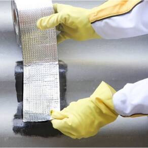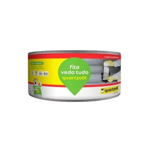 Fita Veda Tudo Quartzolit é uma fita autoadesiva com película de alumínio flexível, protegida por um filme de PVC que é retirado ao aplicar a fita, facilitando a colagem ao substrato.