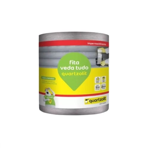 Fita Veda Tudo Quartzolit é uma fita autoadesiva com película de alumínio flexível, protegida por um filme de PVC que é retirado ao aplicar a fita, facilitando a colagem ao substrato.