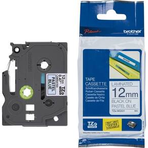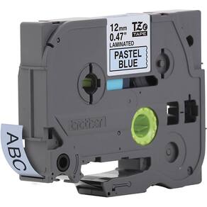 Fita com 12mm de largura, para uso nos rotuladores PTouch. O modelo MQ531 possui impressão em letra preta, sobre fundo azul pastel, para identificação de equipamentos e organização de ambientes.