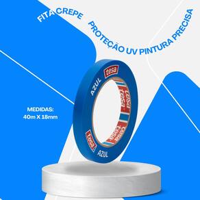 Ficha Técnica: Marca: Tesa Modelo: Fita Crepe Imobiliária Cor: Azul Comprimento: 40 metros Largura: 18 milímetros Uso: Interno e Externo Aplicação: Pintura, demarcação e acabamento