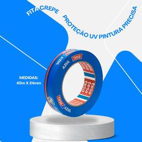 Ficha Técnica: Marca: Tesa Modelo: Fita Crepe Imobiliária Cor: Azul Comprimento: 40 metros Largura: 24 milímetros Uso: Interno e Externo Aplicação: Pintura, demarcação e acabamento