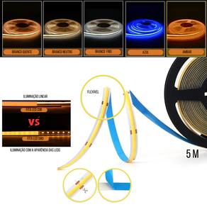 Fita de Led Cob Flexível com Luz Linear, ideais para serem utilizadas em ambientes comerciais e residenciais nas decorações de quartos, paredes, tetos, apartamentos, restaurantes, bares, salões de festas, bancadas de trabalho, corredores, nichos, closets, escritórios, placas, TV, letreiros, painéis, móveis, rodapés, decorações natalinas, igrejas, dias das bruxas halloween e em vários locais com criatividade proporcionando uma iluminação agradável, elegante e divertida.