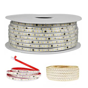 Nosso rolo de fita led possui 100 metros. E corte a cada 10cm. Para cada novo trecho de Fita Led é necessário um conector para ligação na rede elétrica.