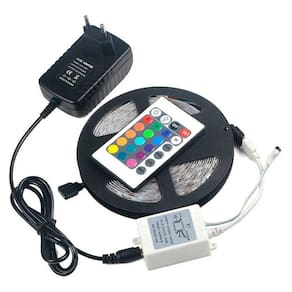 Conexão: Não aplicávelConteúdo: UnitarioMaterial: Otrossin Atributos: Tipo: Otros AccesoriosCaracterísticas:Conviértete en el iluminado de la fiesta con esta tira de luces led, que con sus diferentes colores y funciones puede hacer brillar hasta la más lamentable de las comemoraciones.- Tira de 300 led multicolores res que permite escolher entre a função flash intermitente, strobe, fade y smooth.- Sistema adesivo branco 3M.- Tem cor vermelha, verde e azul.Inclui: - Fita de 5 metros.- Adaptador.- Transformador.- Controle remoto.
