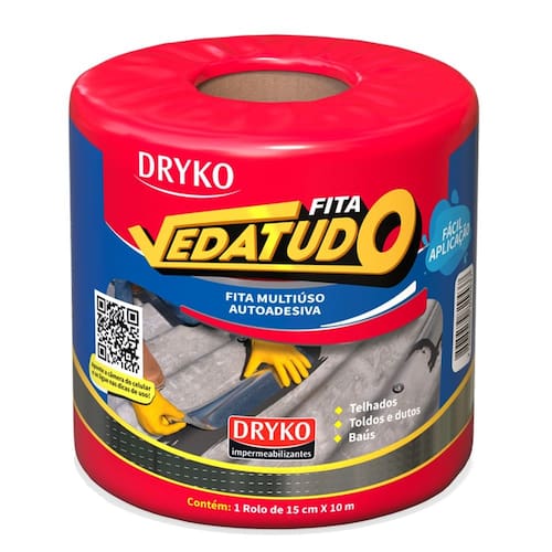 Fita de Manta Asfáltica AutoAdesiva Aluminizada 15cm x 10 Metros Drykofita - FVD15 - DRYKO