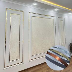 Fita decorativa metalizada dourada para painel ripado 5 metros artesanato decoração filete painel ambientes modernos e s Quantidade: 5 metros Material: ABS acabamento metalizado Espessura: 1.2 mm Tamanho;20 mm Instalação: Fita dupla face, Cola Pu, Cola de Contato, super bond ou silicone