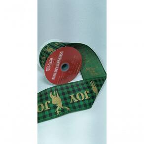 - 1 - Fita Decorativa Xadrez Verde Com Estampa Rena Joy FT573