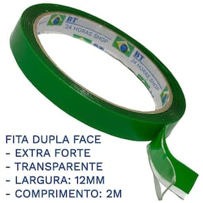 Fita Dupla Face Extraforte Transparente Verdinha 12mm x 2m Fita Dupla Face Acrílica Extraforte Transparente famosa fita verde / verdinha - apenas o plástico de proteção é verde, a fita é transparente